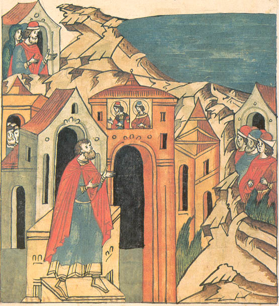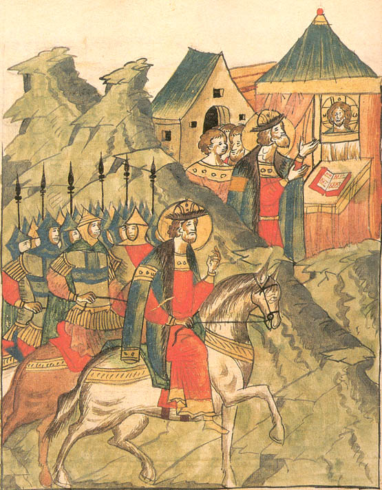 And then he went in all haste, and was met by Grand Prince Aleksandr Iaroslavich. And he, regarding the Prince with joyful eyes, revealed to him alone all that he had seen and heard. And the Prince said to him, "Brother, tell no one of this until God has wrought His will."