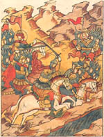 The third, Iakov of Polotsk, was the Prince's Master of the Hunt. He cut through the enemy ranks with his sword, and fought bravely. And the Prince praised him.