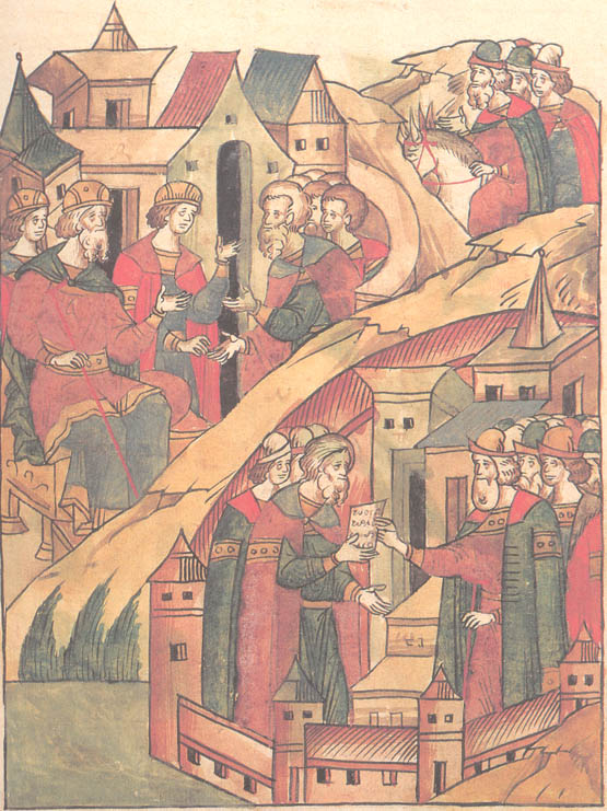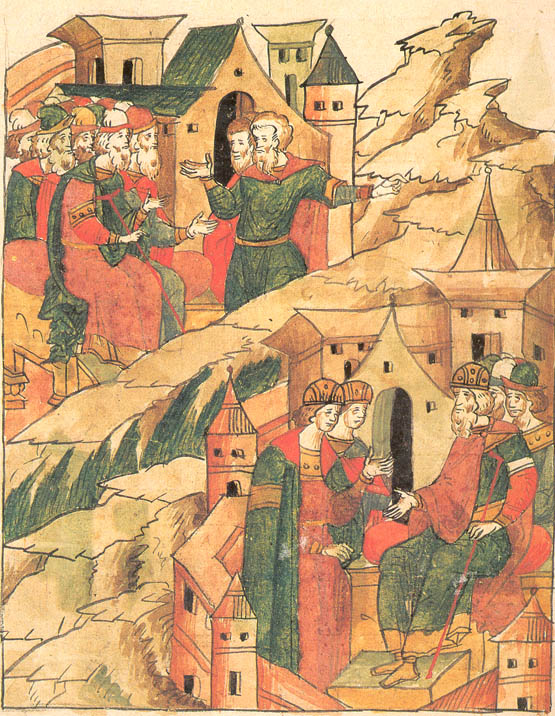 And then the Novgorodians sent their envoys with a petition to Grand Prince Iaroslav Vsevolodovich, pleading for one of his sons to come and rule them. And he sent to them his son Prince Andrei; but they begged hard for Grand Prince Aleksandr, and him he would not send.