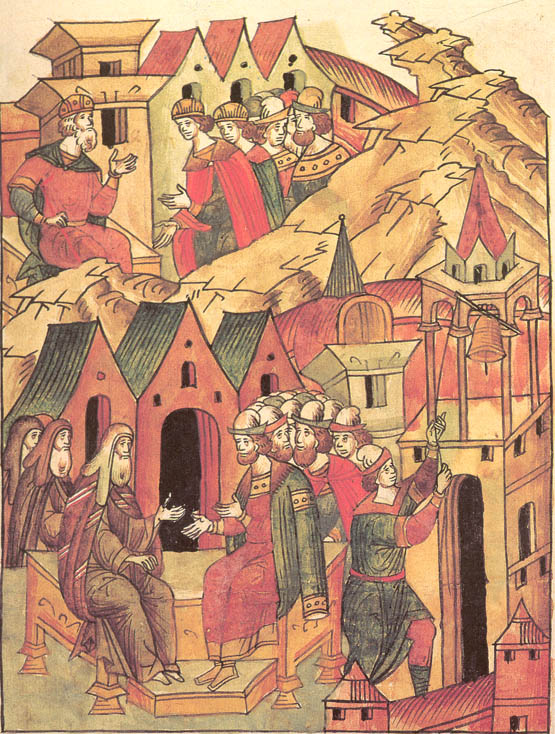 And in this year Novgorodians convened a veche, according to their custom, and sent their Archbishop Spiridon, with some nobles and foremost citizens, to Grand Prince Iaroslav Vsevolodovich, to present again their petition, pleading for Grand Prince Aleksandr to come and rule them.