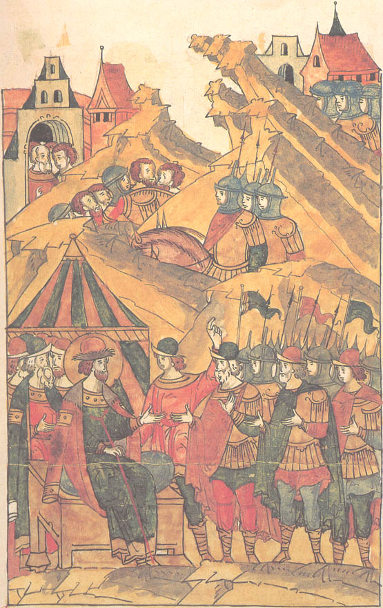 And as they were so employed, the Germans killed commander Damash, the posadnik's brother, and Kerbet, men of great strength and valor; and with them many others; and some they took captive.