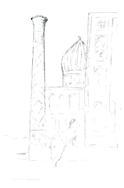 After a time we came to a place called Samarkand in a shallow valley with a rivulet which passes for a river in these parts. It is, or rather was, a great city that King Alexander once conquered, of which he said, "Everything I have heard of Marakanda is true, except that it is more beautiful than I imagined." When we arrived we saw what at first appeared to be low and broken hills of mudstone. Upon drawing close we understood that before us were the ruins of 300 acres of houses, wherein no stone remained upon another stone. Here too were bones and skulls and wreck everywhere -- for what we saw before us was wrought by Genghis Khan more than sixty years ago. It is worse even than Kiev, since no attempt has been made to rebuild and no change to the death beyond wind and weather.
