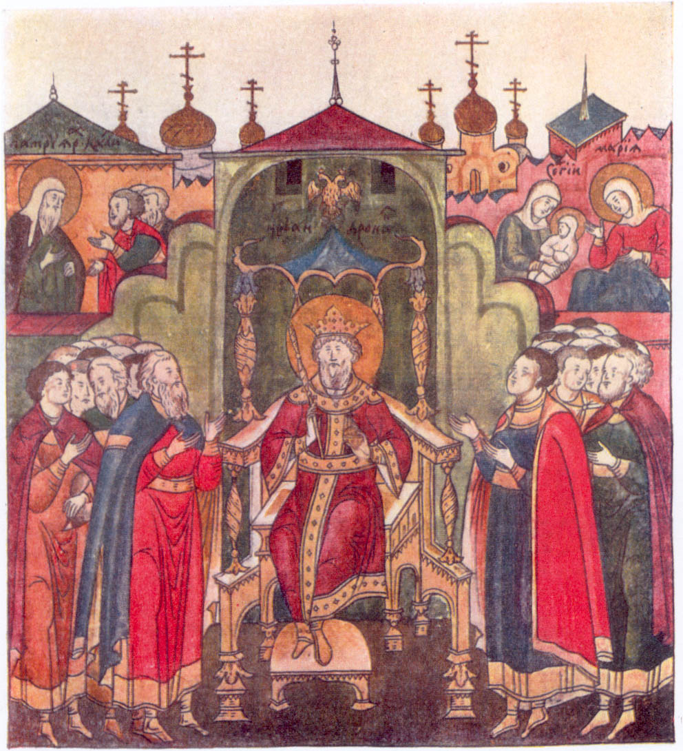 This illustration comes from Zhitie Sergiia [Life of Sergei], pg 30ob, originally housed in the Troitskii Monastery, but moved to the Russian State Library, Moscow.