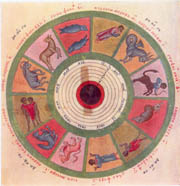 This illustration comes from the "Manuscript of Koz'ma Indikoplov," pg 52, which is housed in the Russian State Library, Moscow. Size of original is 21 by 20.5 cm. Previous Image | Table of Contents Back to the Slavic Interest Group