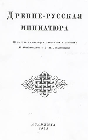 This page is devoted to a series of reproductions of period manuscripts that appeared originally in the folio, Drevne-russkaia miniatiura, Moscow: Academia, 1933. The reproductions are mostly taken from religious manuscripts dating from the 15th to the early 17th centuries.