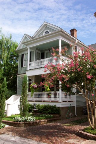 Historic Charleston, as you can see from these pictures has fabulous old buildings that are probably a lot nicer to look at than live in. They didn't necessarily look comfortable and everything was pretty crammed in. They looked more to be the type of places that one rents for a week or one uses to host a big social gathering (everywhere we looked, there were weddings taking place -- a summer wedding in Charleston is apparently a big deal!).