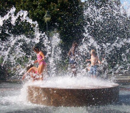 The fountains are beautiful and on this beautiful but very very humid Saturday a welcome sight. The kids certainly enjoyed playing in them and, if I had had a bathing suit, I would have enjoyed joining them. If it seems like I keep mentioning the heat and humidity it is because it was so hard to avoid when I was there. And these pictures hardly give you a good feeling for how painfully uncomfortable it was for a Northerner unaccustomed to it.